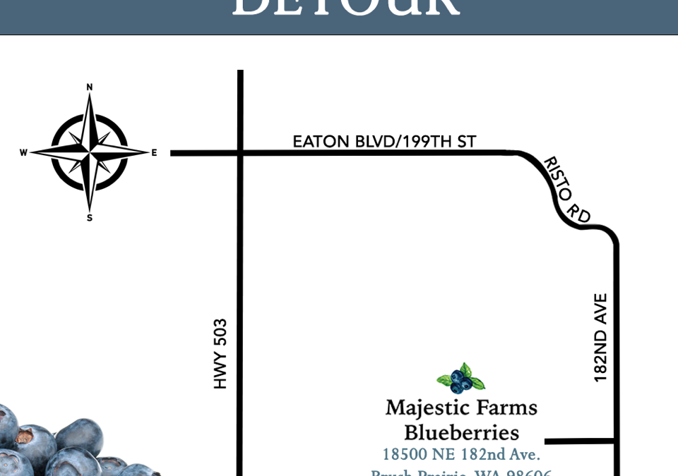 July 8, 2023Summertime in Clark County means road construction. The county is doing road construction on 182nd avenue south of us on weekdays. Here’s an easier, quicker route if you’re coming north from the Vancouver area. Just take SR503 North and follow this map.